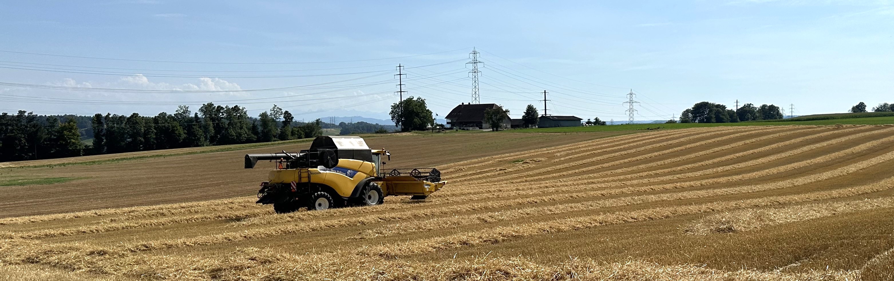 Mit Mähdrescher der Marke Claas und New Holland sind wir zuverlässig in der Getreide-Ernte unterwegs. Je nach Bedarf und Topografie haben wir eine Maschine mit Hangausgleich.