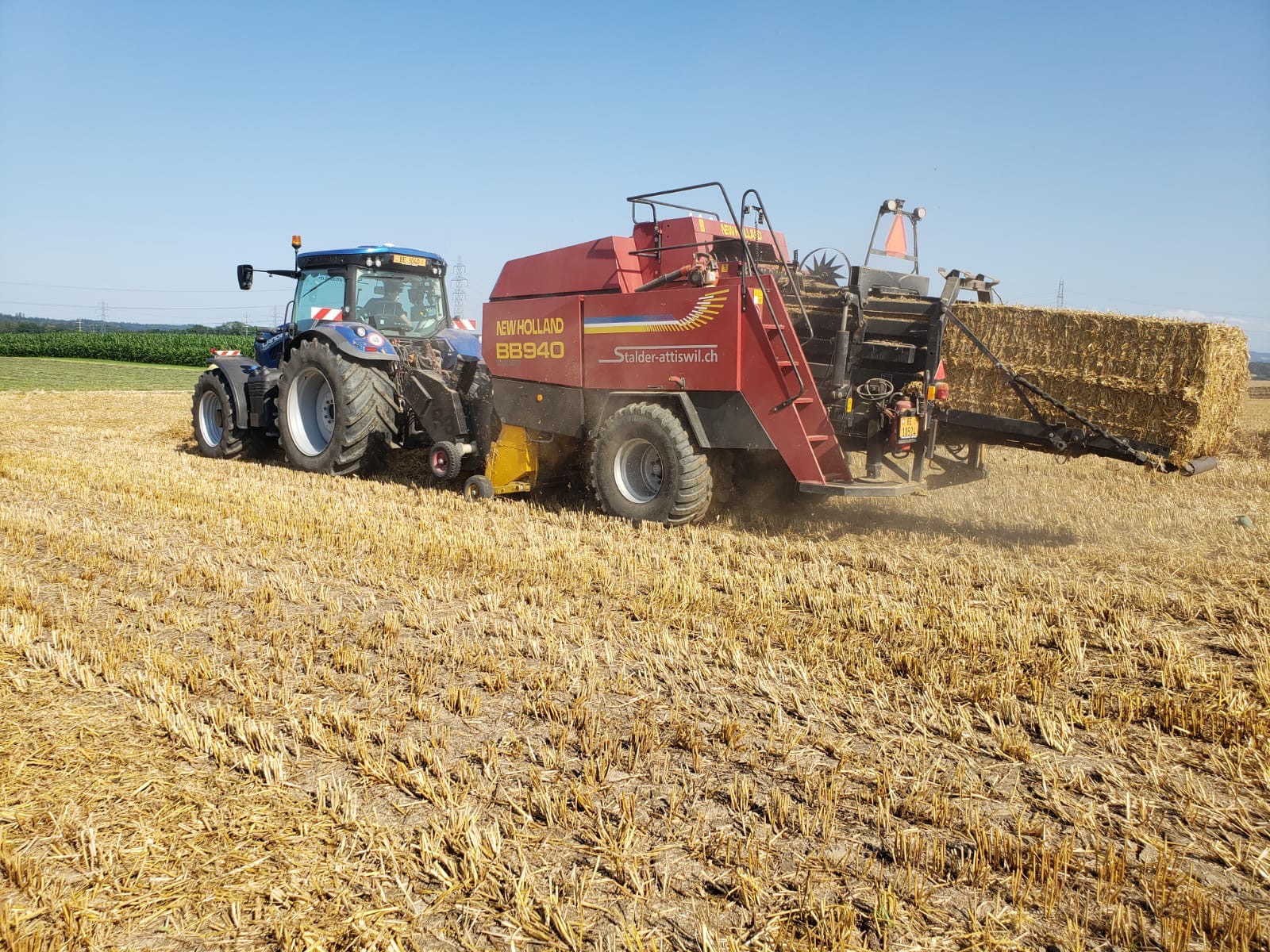 Dank unserer Maschinen mit Vorbauhacker und Schneidewerk können wir schnell und unkompliziert Ihr Heu, Emd, Stroh und Silage einbringen oder ab Feld in Quaderballen pressen.